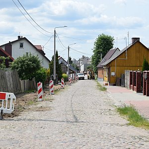 Został już tylko mały odcinek wyłożony starym brukiem na zabytkowej ulicy Chopina. Większość ulicy została już rozebrana, układane są teraz chodniki i wykonywane wjazdy na posesje.