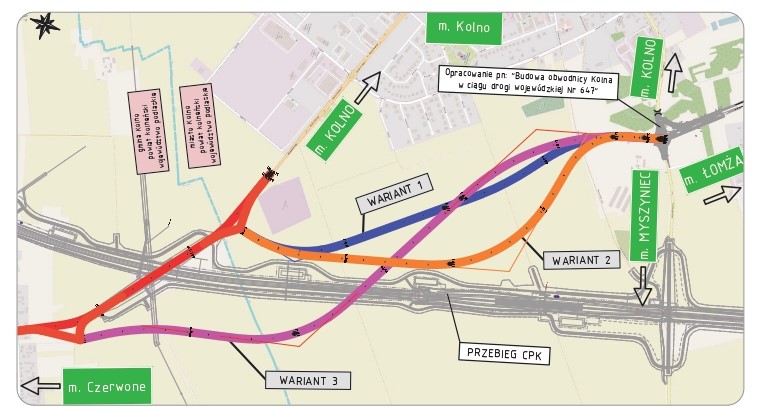 Podczas spotkania omawiano 3 warianty poprowadzenia zachodniej obwodnicy Kolna. Wydaje się, że najbliżej jest do wyboru wariantu 1. We wszystkich przypadkach od strony Czerwonego ma powstać nowe rondo