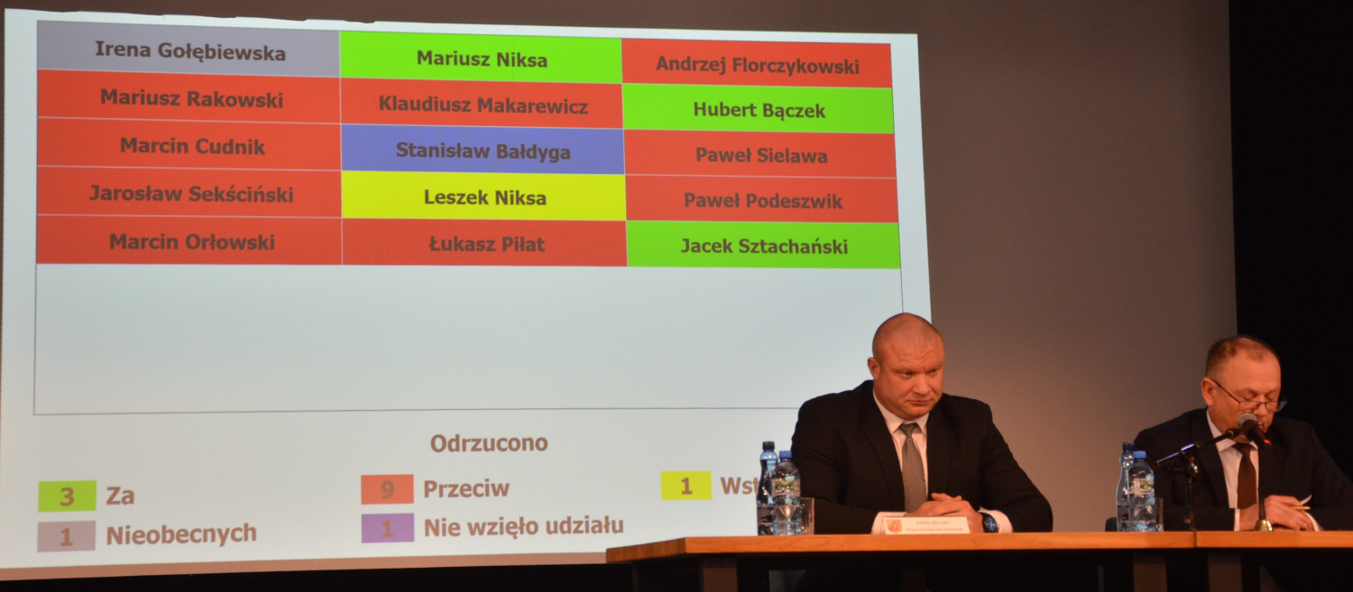 Za zakazem głosowało trzech radnych, jeden się wstrzymał. Jedna osoba nie wzięła udziału w głosowaniu, a jeszcze jedna nie była obecna na sesji.