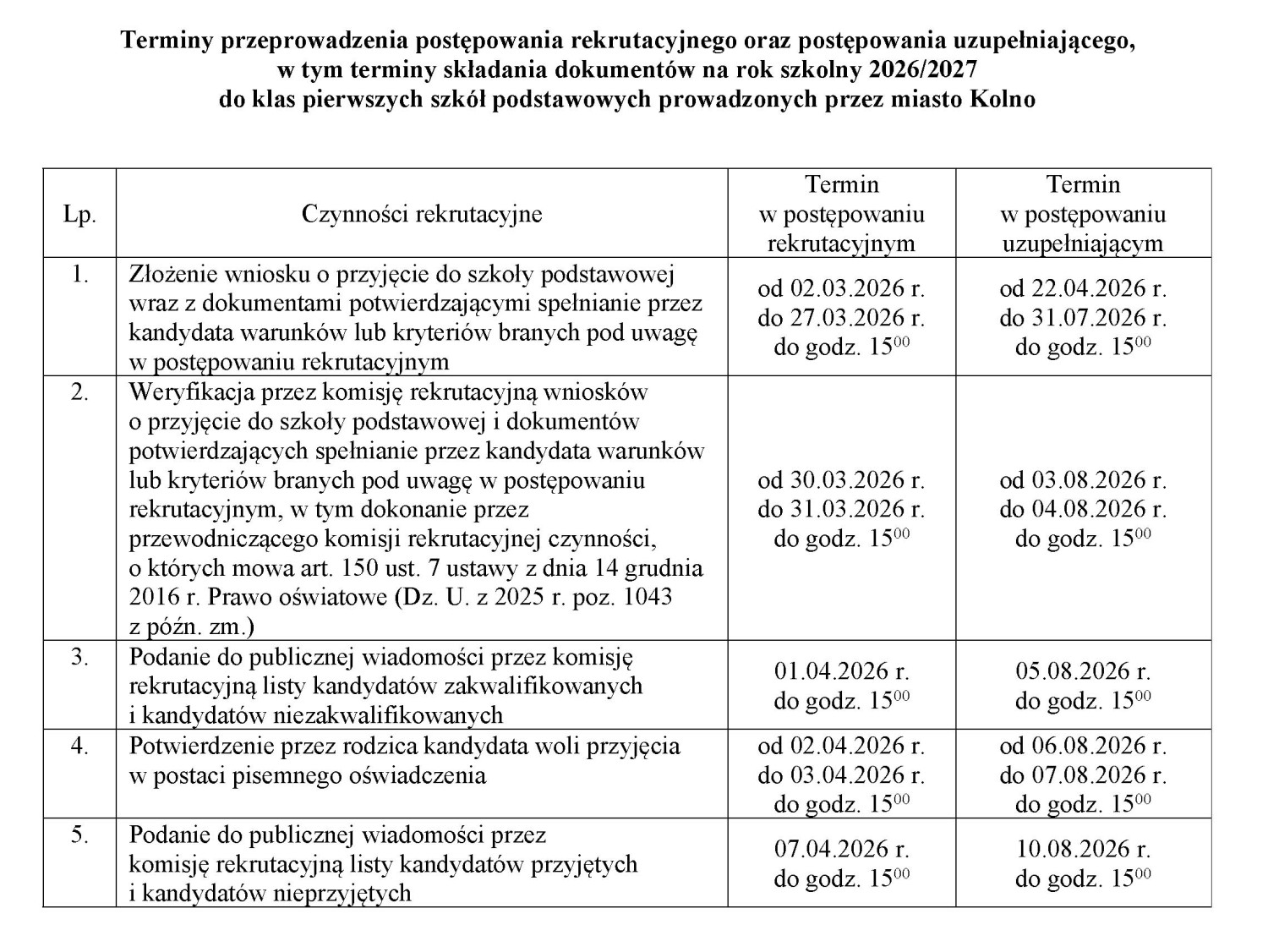 Terminy do szkół podstawowych