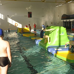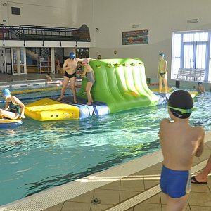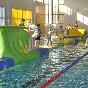 Dzieci i młodzież mogą korzystać podczas ferii zimowych z atrakcji na kolneńskim basenie. Do ich dyspozycji jest między innymi wodny tor przeszkód.