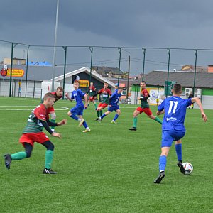 Początek spotkania wlał duże nadzieje w serca kibiców z Kolna. Wiktor Zadroga precyzyjnym strzałem z bliskiej odległości dał prowadzenie swojej drużynie. Zapowiadało się wiec dobrze, ale niestety później bramki zdobywali goście.