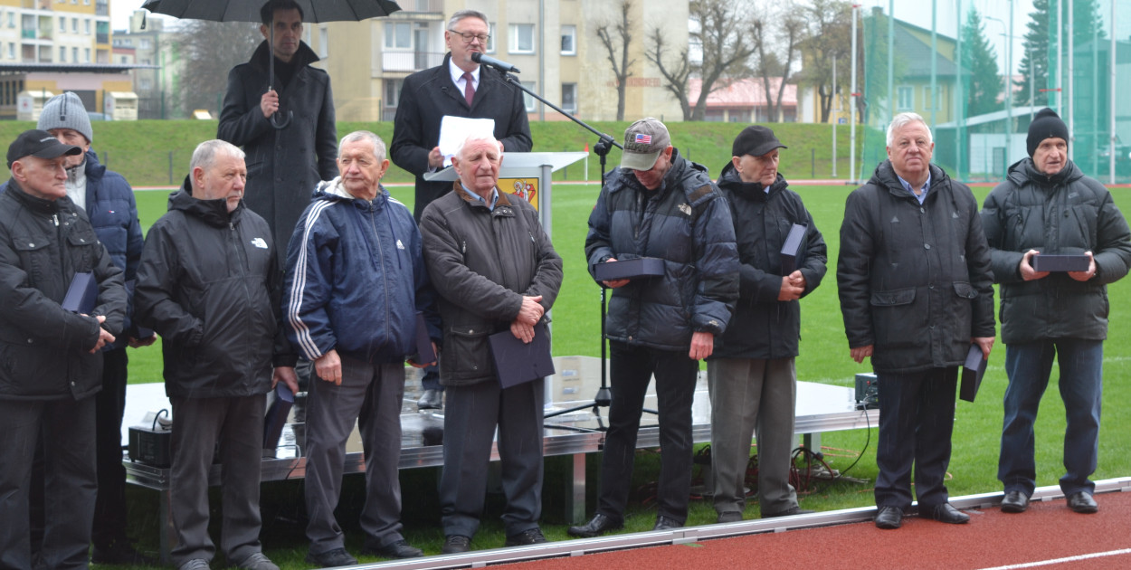 – Tę modernizację byliśmy winni tym, którzy przez wiele lat powodowali to, że w Kolnie rozwijał się sport. To byli nasi wychowawcy, trenerzy, nasi nauczyciele wychowania fizycznego i są dzisiaj z nami – mówił burmistrz. Andrzej Duda zaapelował też o uczczenie minutą ciszy zmarłego (1.04.2024 r.) Bronisława Szymańskiego związanego przez wiele lat z kolneńskim środowiskiem sportowym. W dalszej części przemówienia burmistrz podkreślał jak ważna jest ta inwestycja dla młodego pokolenia mieszkańców naszego miasta. – Był to nasz obowiązek, żeby zmodernizować ten stadion dla tych młodych ludzi, którzy są przed nami, bo chcemy, żeby mogli odnosić sukcesy. Chcemy, żeby mogli rozwijać tu swoje talenty pod okiem instruktorów i cieszę się, że udało nam się zrobić tę modernizację. Gdyby nie ludzie, którzy nas wspierali bardzo w tej modernizacji, nie byłoby na to szans. Próbowaliśmy robić to już kilkakrotnie i zawsze brakowało środków finansowych. Kiedy zgromadziliśmy te środki przyszły trudne czasy - pandemia, wojna, gigantyczna inflacja, ale dzięki zaangażowaniu wielu, wielu ludzi udało nam się te środki zdobyć. Tak naprawdę ponad 90% dofinansowania do tej inwestycji to środki zewnętrzne. Burmistrz podziękował wszystkim, którzy wspierali największą w ostatnich latach inwestycję w Kolnie, m. in.: posłowi Kazimierzowi Gwiazdowskiemu, Marszałkowi Województwa Podlaskiego Arturowi Kosickiemu, radnym sejmiku wojewódzkiego: Jackowi Piorunkowi i Adamowi Wojciechowi Sekścińskiemu, Staroście Kolneńskiemu Tadeuszowi Klamie, radnym miejskim, dyrektor i pracownikom KOKiS-u oraz naczelnikom Wydziału Rozwoju Gospodarczego i wszystkim urzędnikom odpowiedzialnym za rozliczenia techniczne.