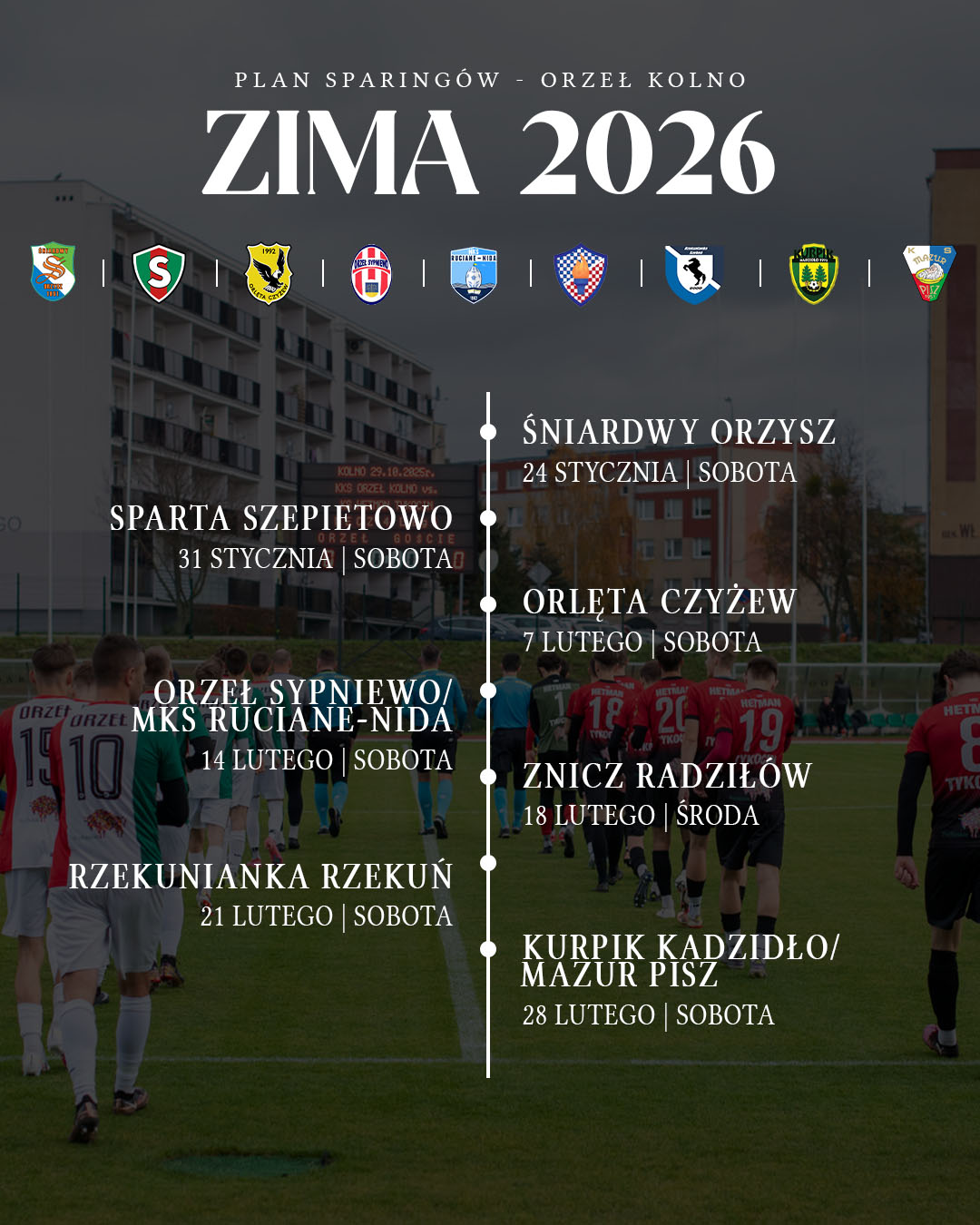 Pierwszą grę kontrolną drużyna Orła Kolno rozegra 24 stycznia. Łącznie zaplanowano 9 spotkań.