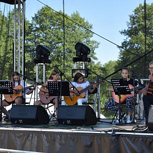 Na scenie swoje umiejętności muzyczne jak i wokalne zaprezentowały dzieci i młodzież z Dziecięcego Zespołu Śpiewaczego z Turośli przy wsparciu koleżanek grających na skrzypcach oraz instrumentaliści grający na gitarach.