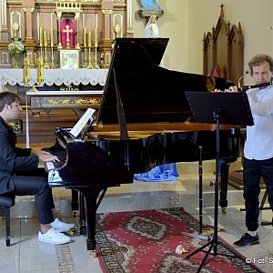 Przed publicznością wystąpili: Aleksander Dębicz – fortepian i Michał Żak – flet.