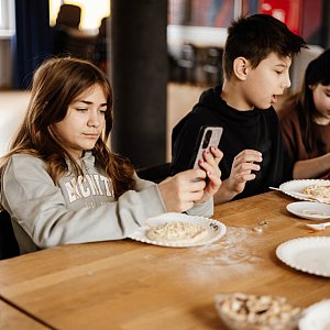 Podczas zajęć kulinarnych w Kolneńskim Ośrodku Kultury i Sportu dzieci zajmowały się przygotowywaniem pizzy do pieczenia. Warsztaty kulinarne zorganizowano w ramach oferty na ferie zimowe.