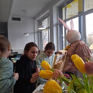 Uczniowie mieli okazję wspólnie z artystką namalować obraz pt. ,,Zaczarowany ogród’’.