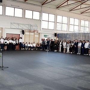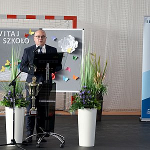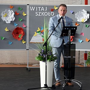 Dyrektor szkoły Zdzisław Śliwecki powitał wszystkich zebranych, w tym zaproszonych gości, uczniów oraz kadrę pedagogiczną. Szczególne słowa skierował do uczniów klas pierwszych, którzy dopiero rozpoczynają naukę w tej szkole.