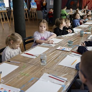Kolejne warsztaty pobudziły ich wyobraźnię – uczestnicy malowali ilustracje do wybranych fragmentów bajek, łącząc zdolności manualne z kreatywnym myśleniem. Cykl zajęć plastycznych zwieńczył kurs malowania zimowego krajobrazu, który cieszył się dużym zainteresowaniem.