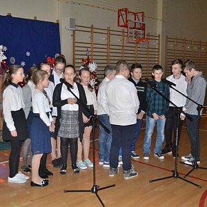 Nauczyciele również nie chcieli być gorsi. Zaśpiewali kolędę „Wesoła nowina”. Trzeba przyznać, że wyszło im to znakomicie.