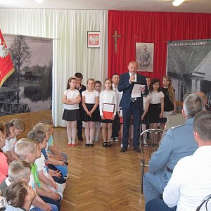 Uroczystość była połączona z wręczeniem nagród za udział w konkursach historycznych zorganizowanych przez Gminną Bibliotekę w Czerwonem oraz otwarciem sprawnościowego toru przeszkód na boisku szkolnym.
