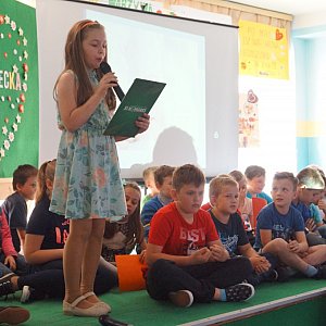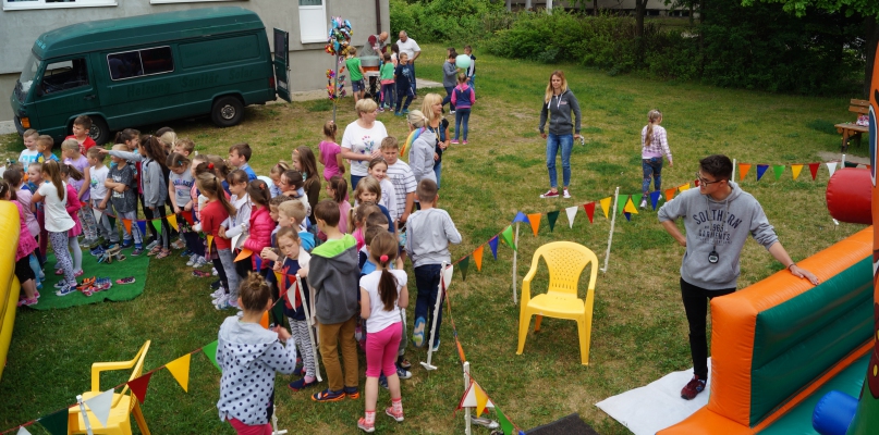 Festyn poprzedziły prezentacje klasowe promujące zdrowy tryb życia, emisja cyklu filmów "Śmietnik w mojej głowie" a także słodkie upominki od wójta Andrzeja Piętki dla najmłodszych.