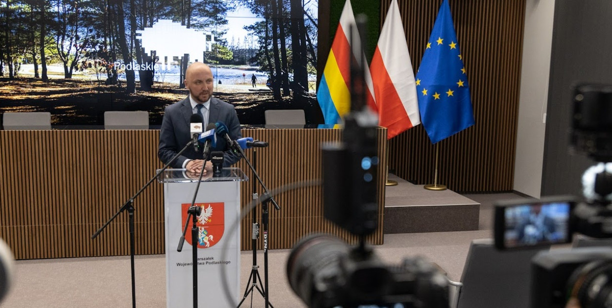 – Stanowiska przyjęte przez trzy podlaskie samorządy: Łomżę, Suwałki i Powiat Sokólski nie mają charakteru dyskryminacyjnego – poinformował marszałek Łukasz Prokorym w poniedziałek, 12.05, podczas briefingu prasowego. Tym samym nie ma żadnych podstaw, aby wstrzymać przekazywanie środków europejskich tym samorządom.