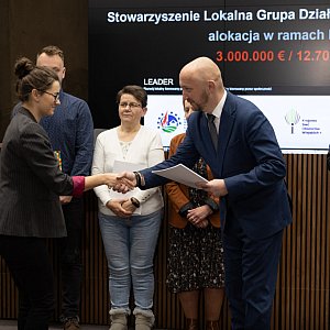 Ponad 914 tys. zł trafi do dziewięciu beneficjentów z Lokalnych Grup Działania. To pieniądze na lokalne inicjatywy, jak miejsca do rekreacji mieszkańców czy świetlice wiejskie, ale też na wsparcie przedsiębiorców. Z beneficjentami spotkali się w środę (17.12) marszałek Łukasz Prokorym oraz członek zarządu Bogdan Dyjuk.