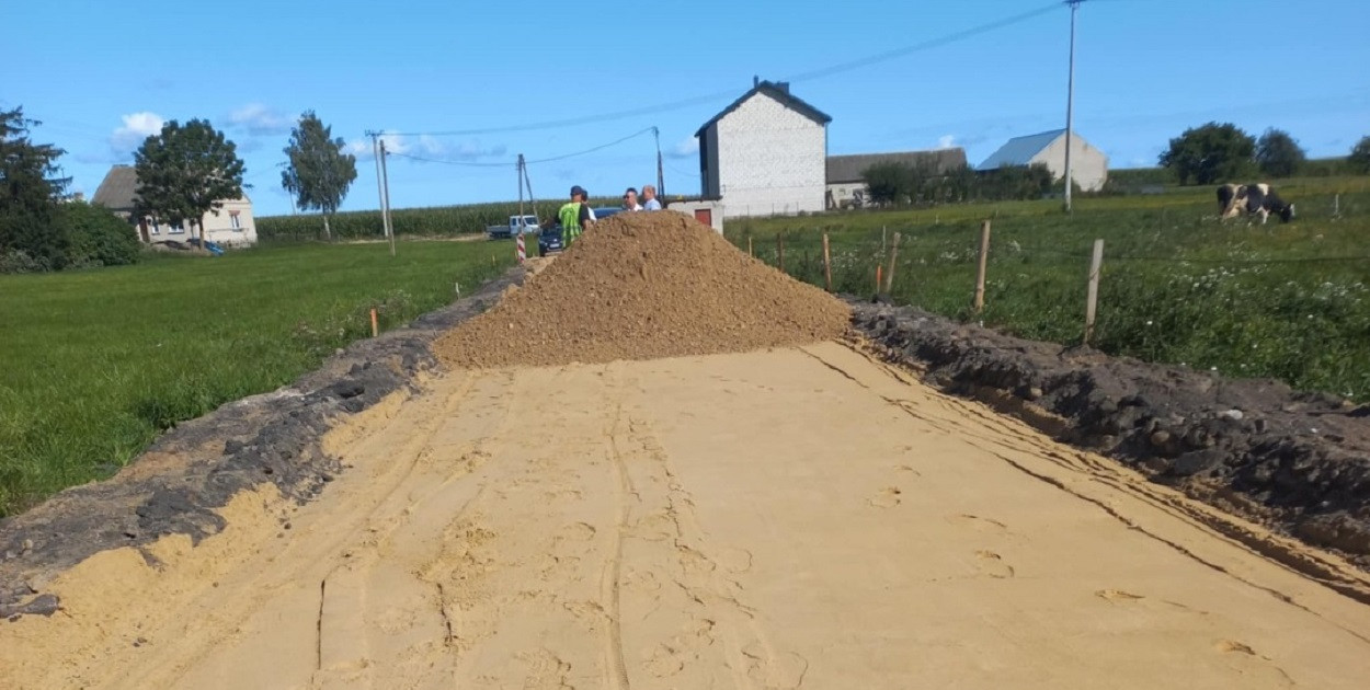 Remont drogi wykonywany jest w ramach projektu „Przebudowy i rozbudowy dróg na terenie Gminy Kolno”
