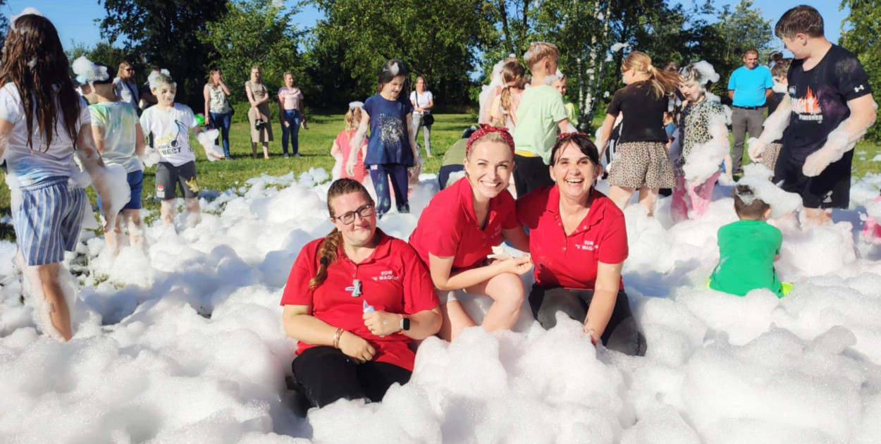 Na dzieci czekała cała masa atrakcji od przepysznej gastronomii przygotowanej przez Panie z KGW po zjeżdżalnie, dmuchańce, animacje, pianę party czy eksplozję z kolorami holi.
