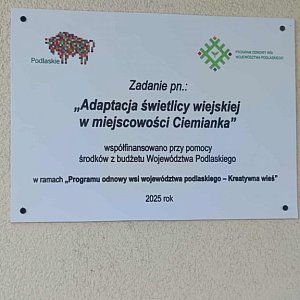 Gmina Grabowo dokonała (30.09) odbioru ostatecznego inwestycji współfinansowanej z budżetu Województwa Podlaskiego w ramach „Programu odnowy wsi województwa podlaskiego - Kreatywna wieś” - "Adaptacja świetlicy wiejskiej w miejscowości Ciemianka "
