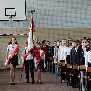A kto w tej szkole odpowiada za ceremoniał szkoły? A kto uczy historii? Poczty (uczniów i rodziców) mają odwrotnie nałożone biało- czerwone szarfy!!! Powinny być przewieszone przez prawe ramię i spięte na lewym biodrze! A tu jest odwrotnie. Do ta ważnej uroczystości trzeba się solidnie i fachowo przygotować, bo inaczej wyjdzie ... jak wyszło.
