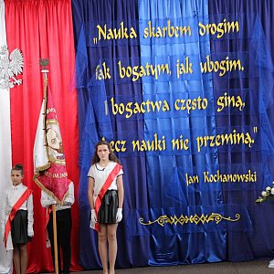 Na zakończenie uczniowie zaprezentowali część artystyczną nawiązującą do swojego patrona – Jana Kochanowskiego.
