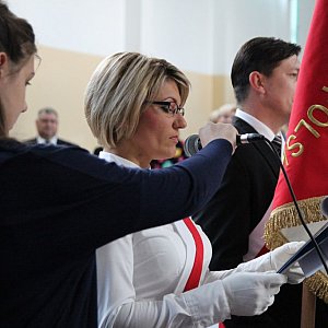 Reprezentanci uczniów złożyli uroczyste ślubowanie, a po nim oficjalnie zaprezentowano sztandar uczestnikom spotkania.
