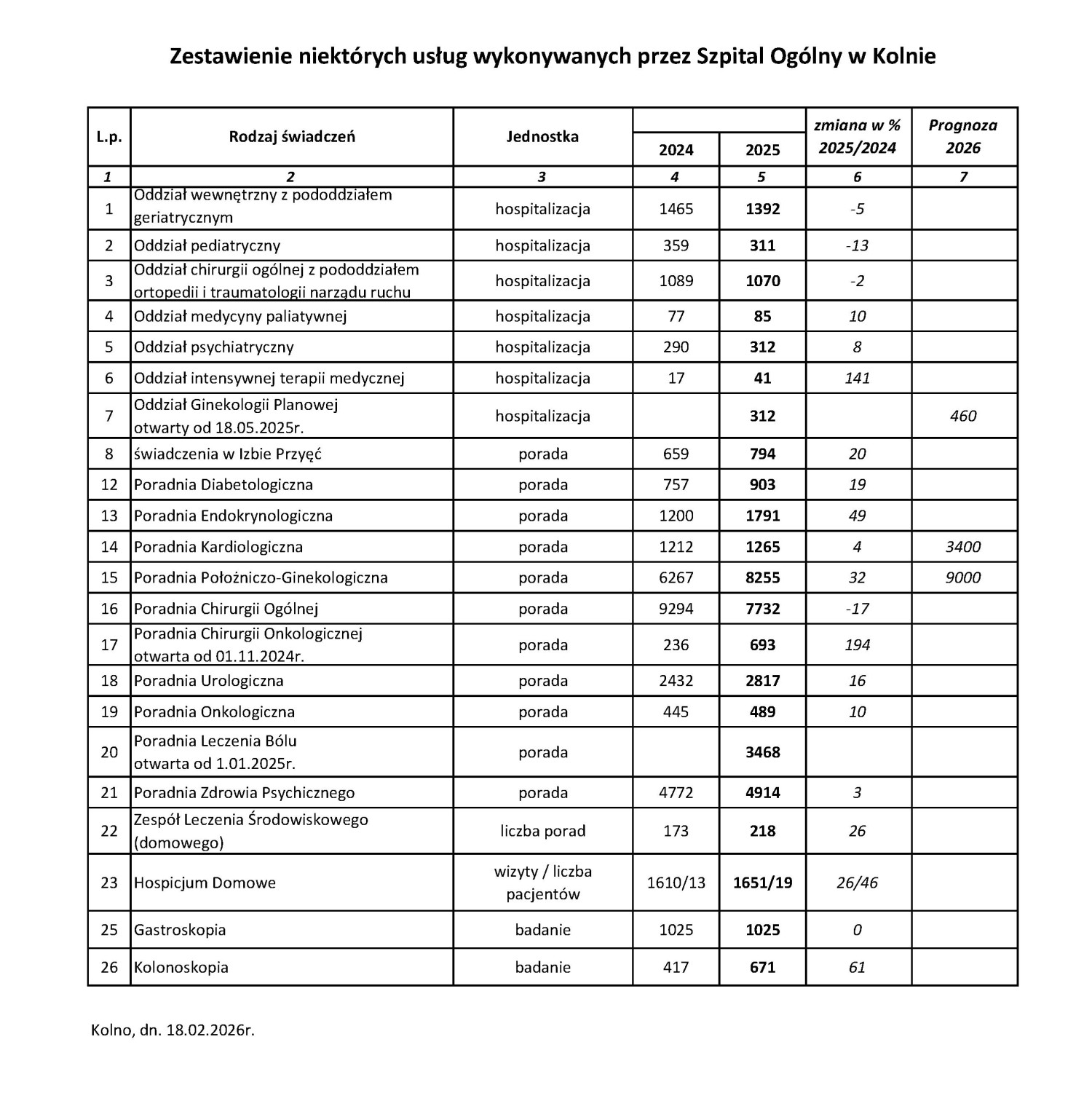 Długozima podczas sesji przedstawiła dane statystyczne dotyczące świadczeń realizowanych w Szpitalu Ogólnym w Kolnie. W kolneńskim szpitalu najwięcej zabiegów wykonano w Poradni Położniczo-Ginekologicznej i Poradni Chirurgii Ogólnej (zestawienie na końcu artykułu).