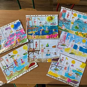 Warunkiem uczestnictwa było wykonanie pracy plastycznej ukazującej bezpieczne zachowania nad wodą. Autorzy zwycięskich prac otrzymali dzisiaj pamiątkowe dyplomy i nagrody (fot. KPP Kolno)
