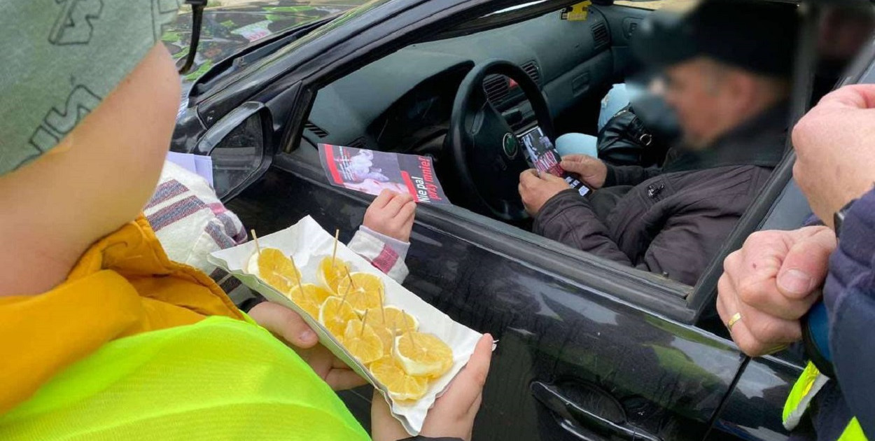Głównym celem akcji „Jabłko czy cytryna?”, zorganizowanej przy współpracy z Powiatową Stacją Sanitarno - Epidemiologiczną w Kolnie, było zwrócenie uwagi kierujących na przestrzeganie obowiązujących przepisów ruchu drogowego. Akcja została przeprowadzona w dwóch miejscowościach.