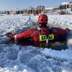 Scenariusz ćwiczeń zakładał, że pod osobą załamuje się lód, wpada ona do wody i nie może się wydostać na brzeg o własnych siłach.