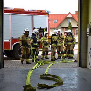 Po części oficjalnej przystąpiono do omówienia założeń ćwiczeń. Uczestnicy zostali zapoznani z dwoma zaplanowanymi epizodami oraz przypomniano kluczowe zasady prowadzenia działań ratowniczych, w tym wykorzystanie akronimu SPOŁEM oraz zasady zarządzania powietrzem podczas pracy w aparatach ochrony dróg oddechowych. Duży nacisk położono na komunikację radiową pomiędzy PSK - KDR a rotami pracującymi w aparatach ODO.