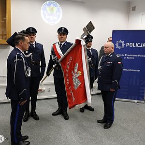 Ze Sztandarem Komendy Powiatowej Policji w Kolnie przywitał się obejmujący stanowisko podinspektor Marek Korolczuk. Pożegnał się natomiast młodszy inspektor Ryszard Duchnowski, który przez cztery ostatnie lata stał na czele kolneńskiej komendy Policji.