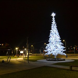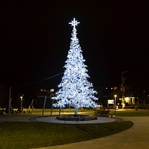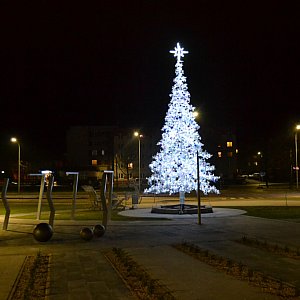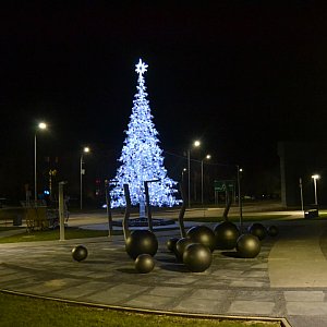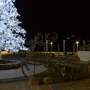 Na placu przy stadionie miejskim pojawiły się sanie z reniferem oraz choinka, a przed urzędem miasta świąteczna kula.