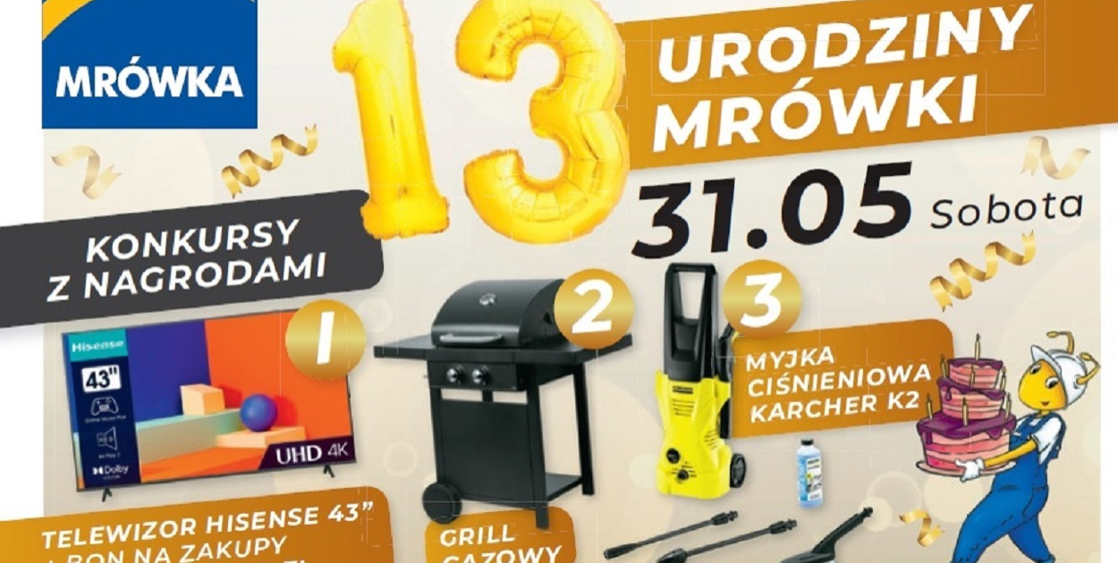 Tak! To już trzynaste urodziny marketu PSB Mrówka Kolno! Z tej okazji 31 maja, w sobotę zapraszamy wszystkich na naszą urodzinową imprezę!