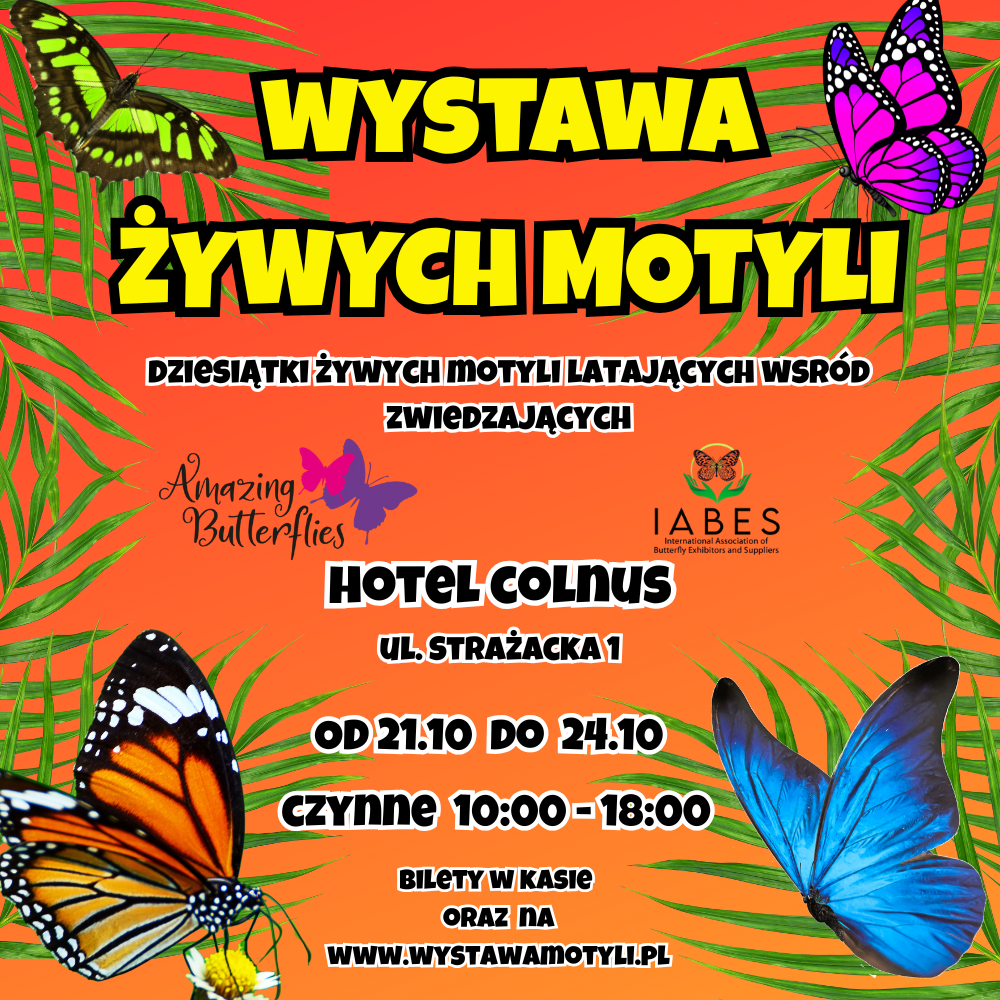Czy można poczuć klimat egzotycznej dżungli, nie wyjeżdżając z Polski? Już wkrótce przekonają się o tym mieszkańcy Kolna i okolic! Od 21 do 24 października w hotelu Colnus przy ul. Strażackiej 1 zagości niezwykła, pełna barw i lekkości Wystawa Żywych Motyli – Amazing Butterflies.