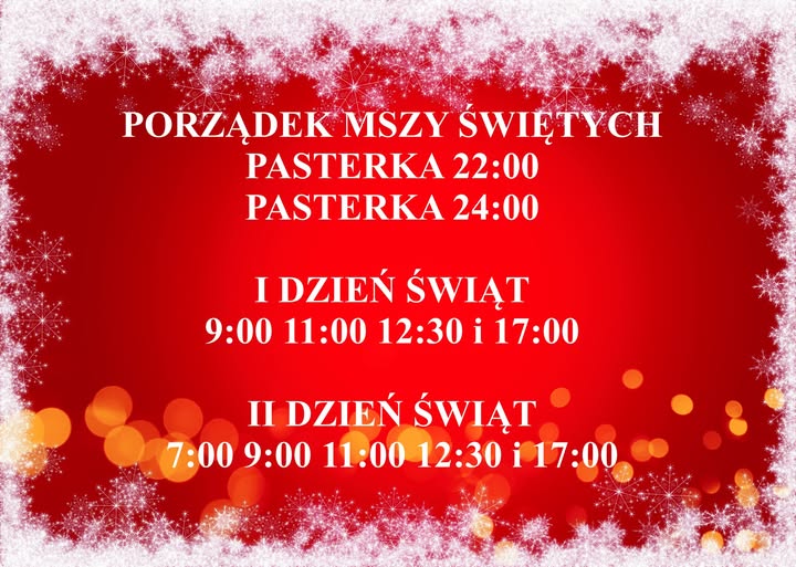 W środę 24 grudnia wigilia – msze św. o godz. 7:30, 22:00 i 24:00