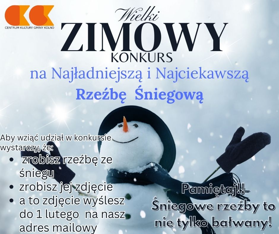 Zima trochę utrudnia nam życie, ale może być też okazją do znakomitej zabawy. Dostrzegło to Centrum Kultury Gminy Kolno, które organizuje konkurs na najciekawszą rzeźbę ze śniegu.