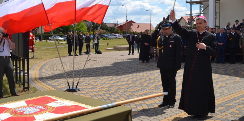 Uroczystość powiatowych obchodów Dnia Strażaka 2017 połączone z nadaniem sztandaru KP PSP w Kolnie oraz jubileuszem 66-lecia powstania Zawodowej Straży Pożarnej rozpoczęła się w samo południe mszą świętą, którą celebrował biskup Tadeusz Bronakowski.