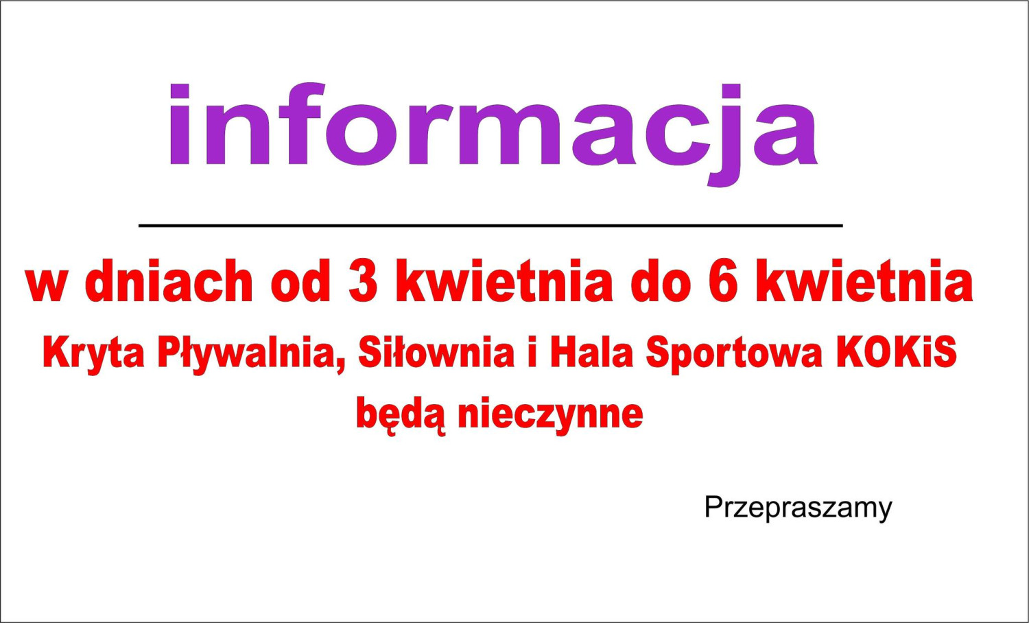 Kolneński Ośrodek Kultury i Sportu poinformował o zamknięciu obiektów sportowych na czas najbliższych świąt.