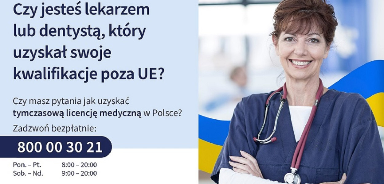 Światowa Organizacja Zdrowia (WHO) we współpracy z Ministerstwem Zdrowia uruchomiła specjalne telecentrum dedykowane dla lekarzy oraz dentystów, którzy uzyskali swoje kwalifikacje poza terytorium Unii Europejskiej, między innymi z Ukrainy. Każda osoba, która zadzwoni pod podany numer, otrzyma wyczerpujące informacje na temat procedur oraz dokumentów niezbędnych do otrzymania tymczasowej licencji lekarskiej uprawniającej do podjęcia praktyki lekarskiej na terytorium Rzeczypospolitej.