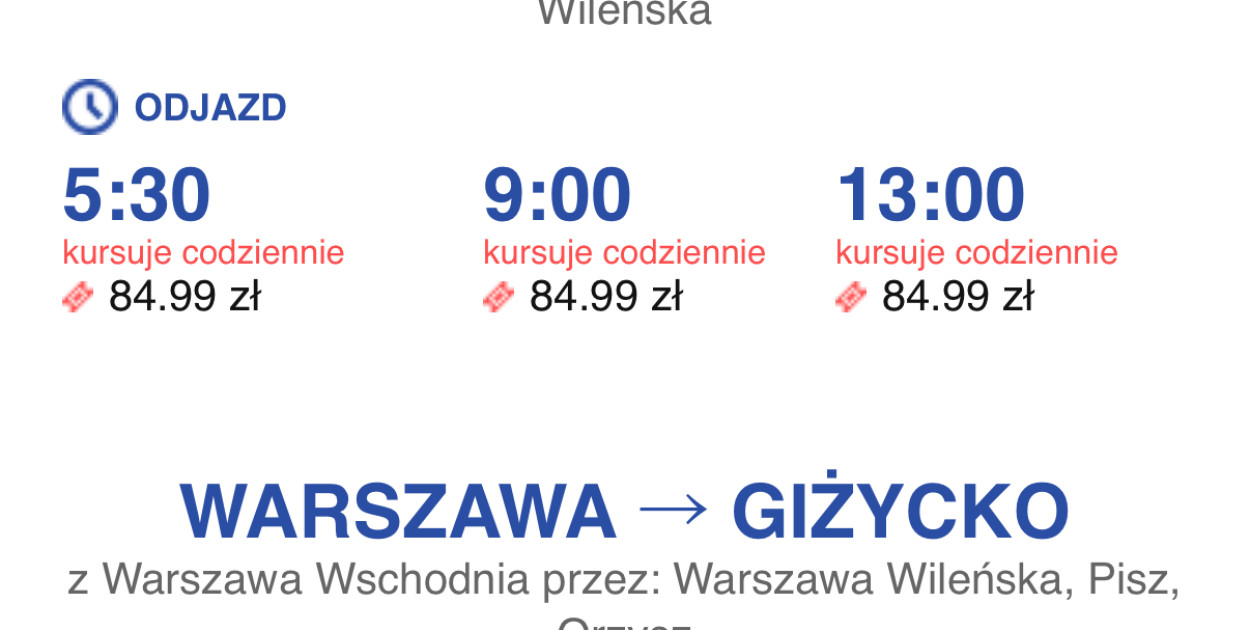 Co istotne według Czytelnika: ceny na innych odcinkach tej samej trasy (np. Pisz – Warszawa, Orzysz – Warszawa) nie uległy zmianie, podwyżka dotyczy wyłącznie odcinka Kolno – Warszawa.