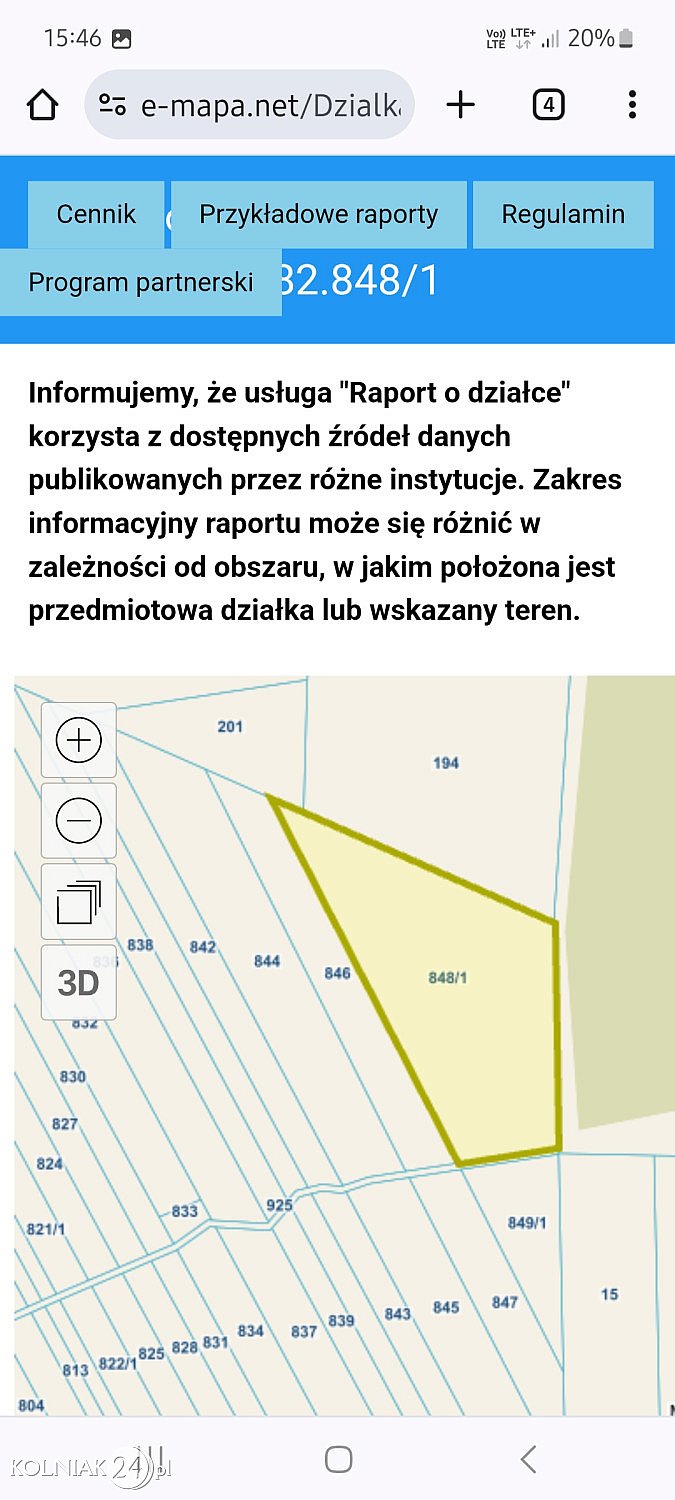 Sprzedam łąkę w gminie Mały Płock 1,23h (obręb Kołaki) działka 848/1, 849/1