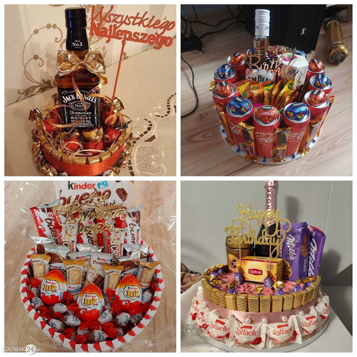 Wykonam torty ze słodyczy/ alkoholu na różne okazje. Koszt robocizny 50 zł+ koszty produktów udokumentowane paragonami. Zapraszam. Tel. 690-172-612.
