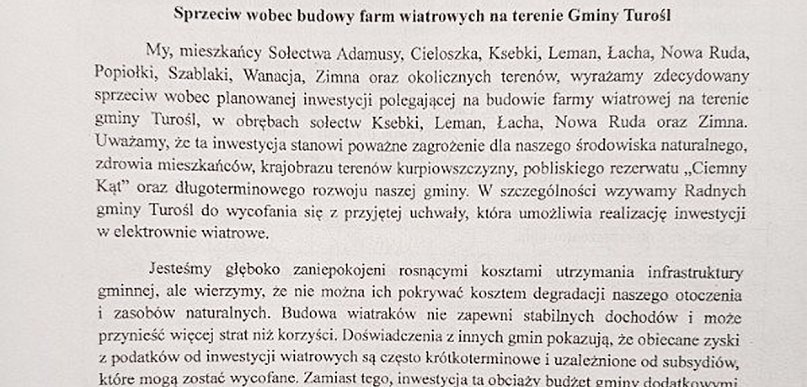 Spokojne, rolnicze i przyrodniczo cenne tereny gminy Turośl stają się miejscem narastającego konfliktu. Na pierwszej linii są rolnicy – to oni najliczniej przychodzą na komisje, zabierają głos i otwarcie mówią o swoich obawach. Nie stoją za nimi oficjalnie ani środowiska biznesowe, ani instytucje. To głównie rolnicy walczą o przyszłość swoich gospodarstw. Obawiają się o swoje grunty, bezpieczeństwo produkcji rolnej i jakość paszy, którą karmią zwierzęta. Wskazują na ryzyko skażenia gleby i wód, a także na możliwe osuszenie terenów, które dziś mają kluczowe znaczenie dla lokalnego rolnictwa.